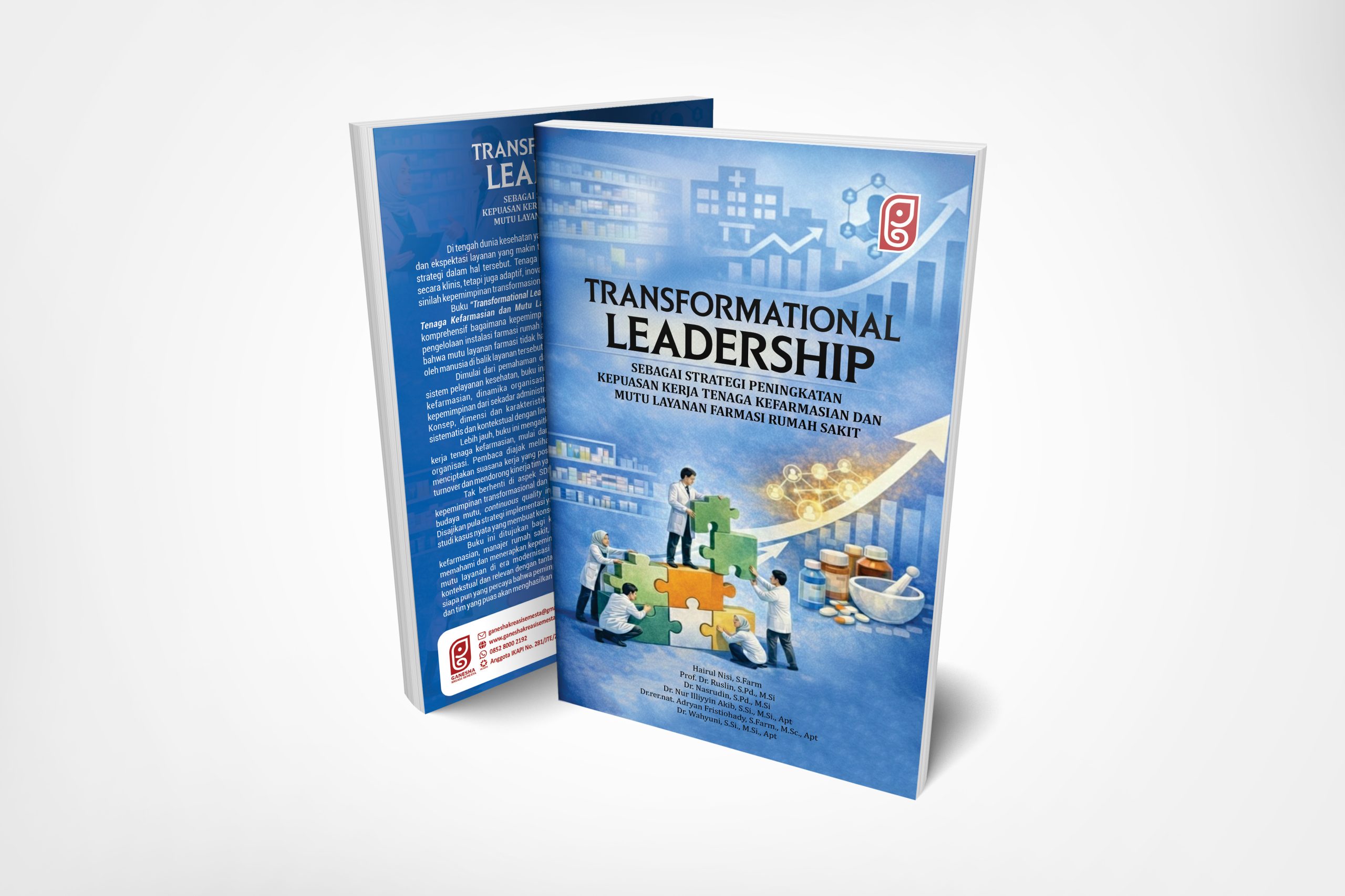 Buku “Transformational Leadership sebagai Strategi Peningkatan Kepuasan Kerja Tenaga Kefarmasian dan Mutu Layanan Farmasi Rumah Sakit” mengupas secara komprehensif bagaimana kepemimpinan transformasional menjadi game changer dalam pengelolaan instalasi farmasi rumah sakit modern. Buku ini mengajak pembaca memahami bahwa mutu layanan farmasi tidak hanya ditentukan oleh sistem dan teknologi, tetapi juga oleh manusia di balik layanan tersebut.